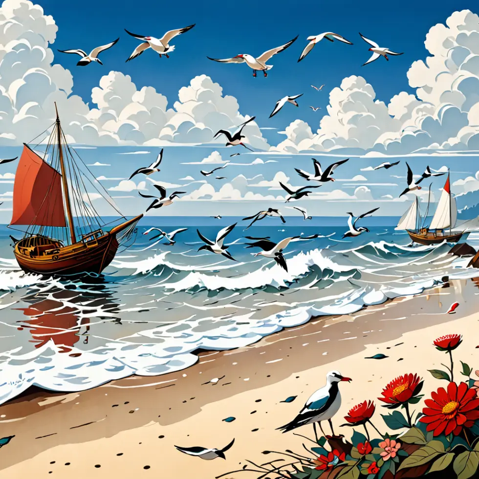 Seaside Scene with Birds