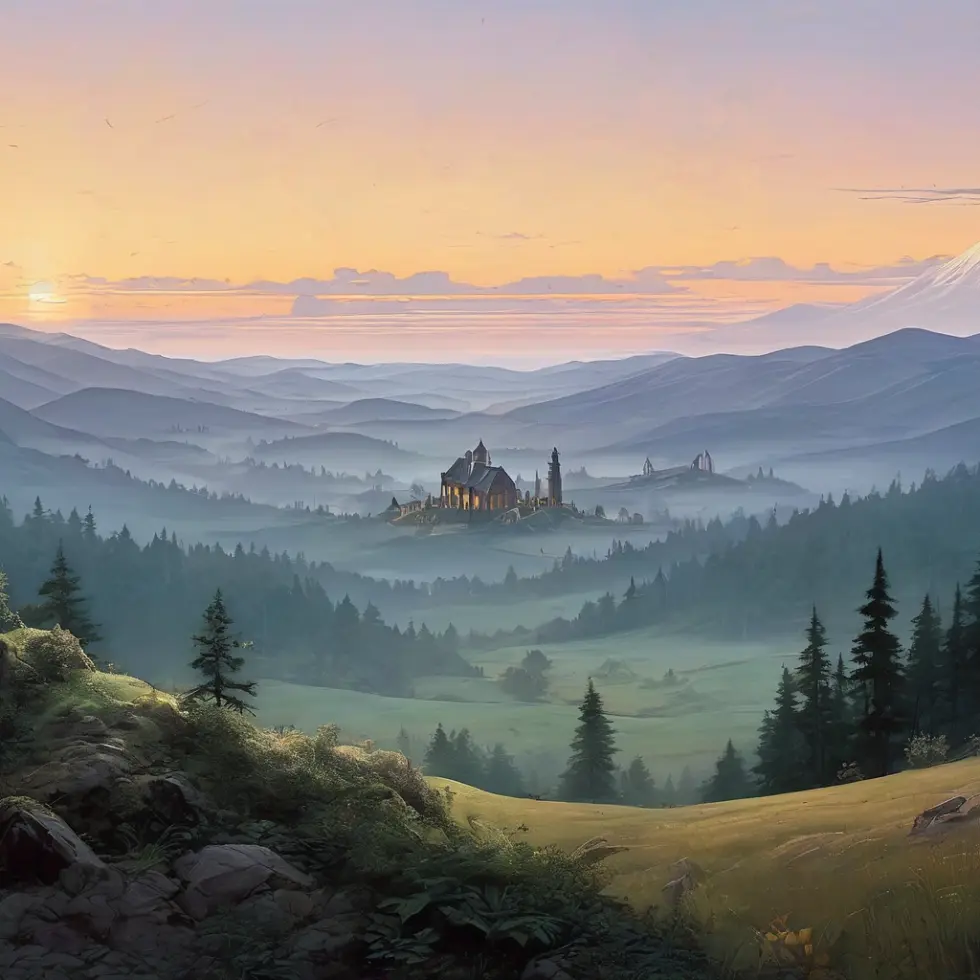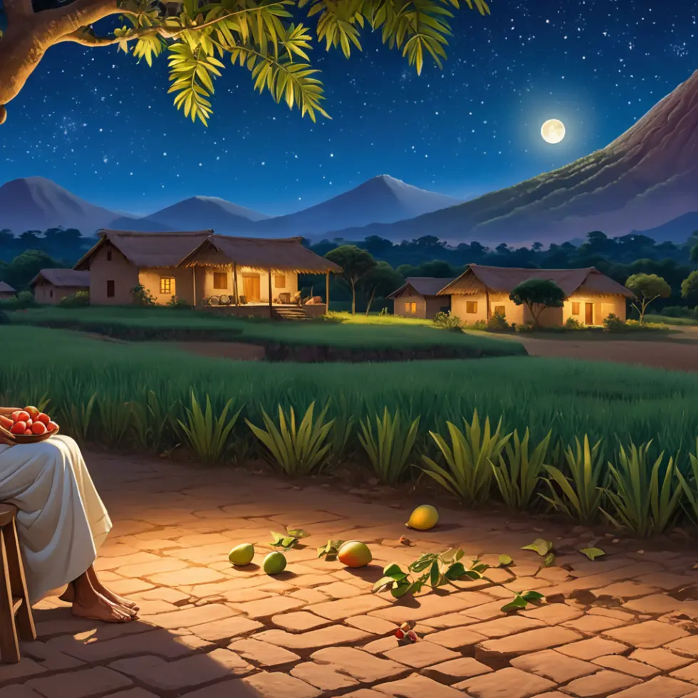 Nighttime village scene with lady