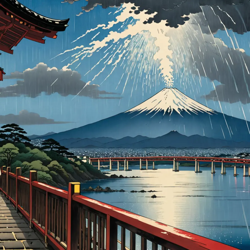 “Sudden Shower Over Shin-ลhashi bridge and Atake” by Hiroshige