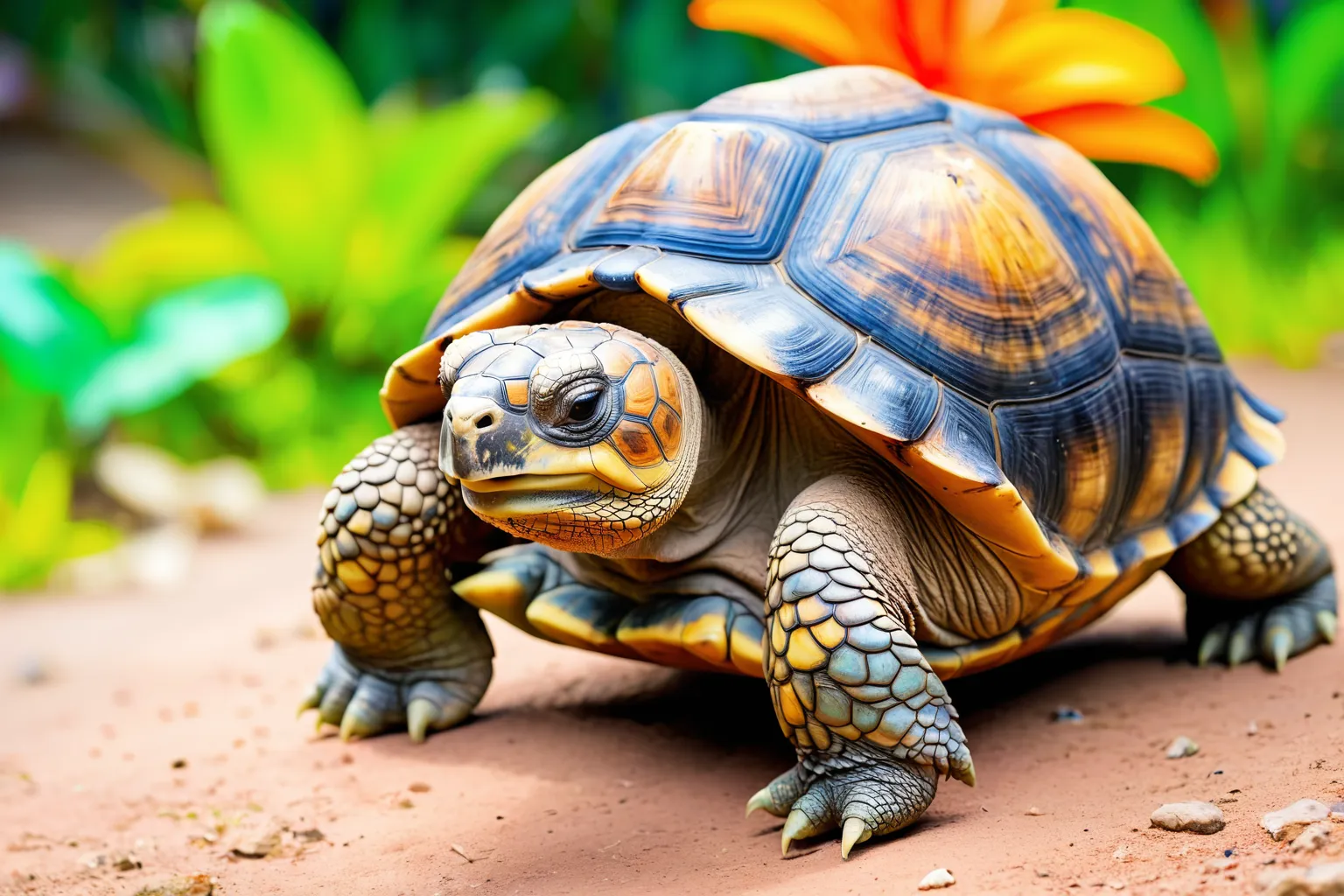 Galapagos Tortoise, colorful, very detailed, HD, highly detailed, sharp focus, stunningly beautiful, kawaii style, cute, adorable, brightly colored, cheerful, anime influence, highly detailed