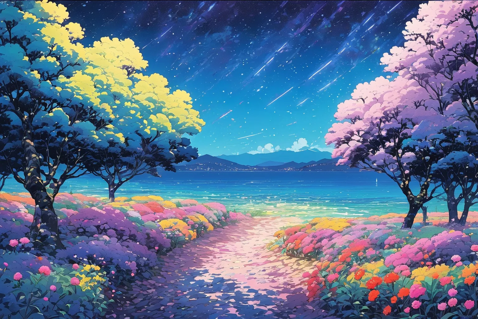Plum Yew, El Salvador, night, long-long ago, hail, Historical genre, Spray painting by Alfred Sisley, colorful, very detailed, HD, highly detailed, sharp focus, stunningly beautiful, Suprematism, abstract, limited color palette, geometric forms, Suprematism