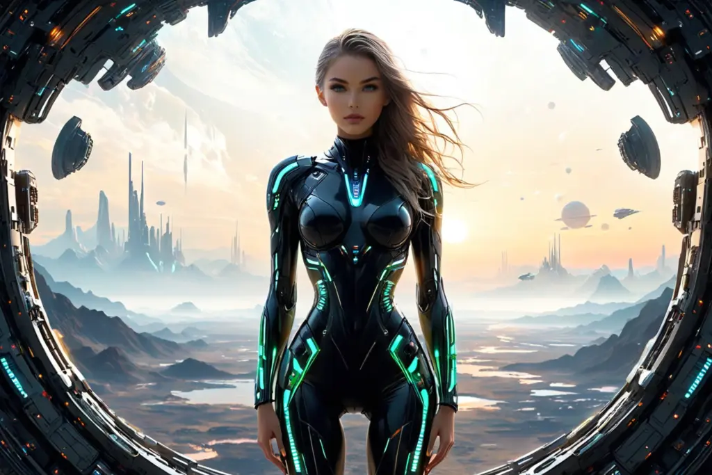 Promptbeautiful woman, in full height, great body, gorgeous figure, beautiful face, HaloDAO cryptocurrency style, beautiful background, magnificent scenery, colorful, very detailed, HD, highly detailed, sharp focus, stunningly beautiful, expressionist, raw, emotional, dynamic, distortion for emotional effect, vibrant, use of unusual colors, detailedNegative promptrealism, symmetry, quiet, calm, photo
