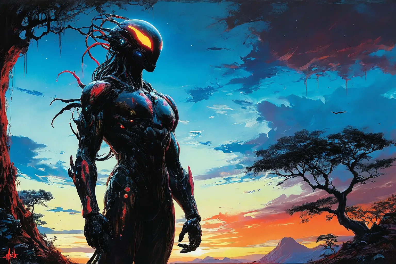 alien, Burkina Faso, night, present, dew, Grisaille, Scribble Art by Sir Edwin landseer, NSFW, colorful, very detailed, HD, highly detailed, sharp focus, stunningly beautiful, Silhouette Art, high contrast, well defined, Silhouette Art