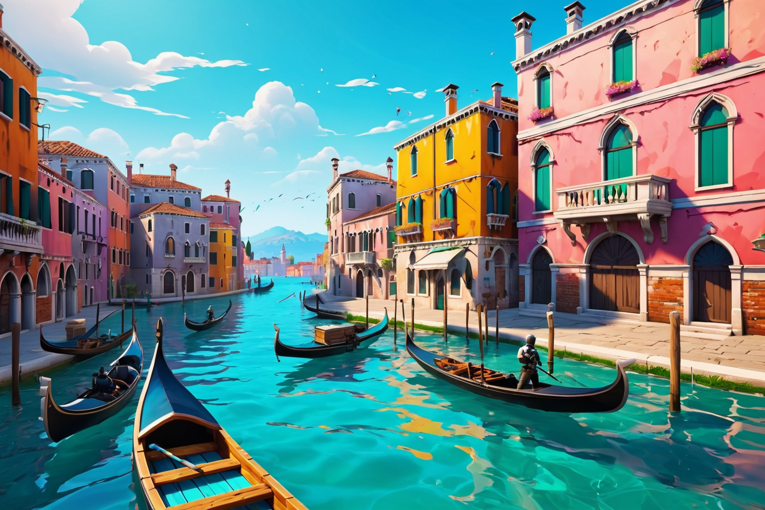 Venice Italy, colorful, very detailed, HD, highly detailed, sharp focus, stunningly beautiful, Fortnite Art Style, 3D cartoon, colorful, Fortnite Art Style