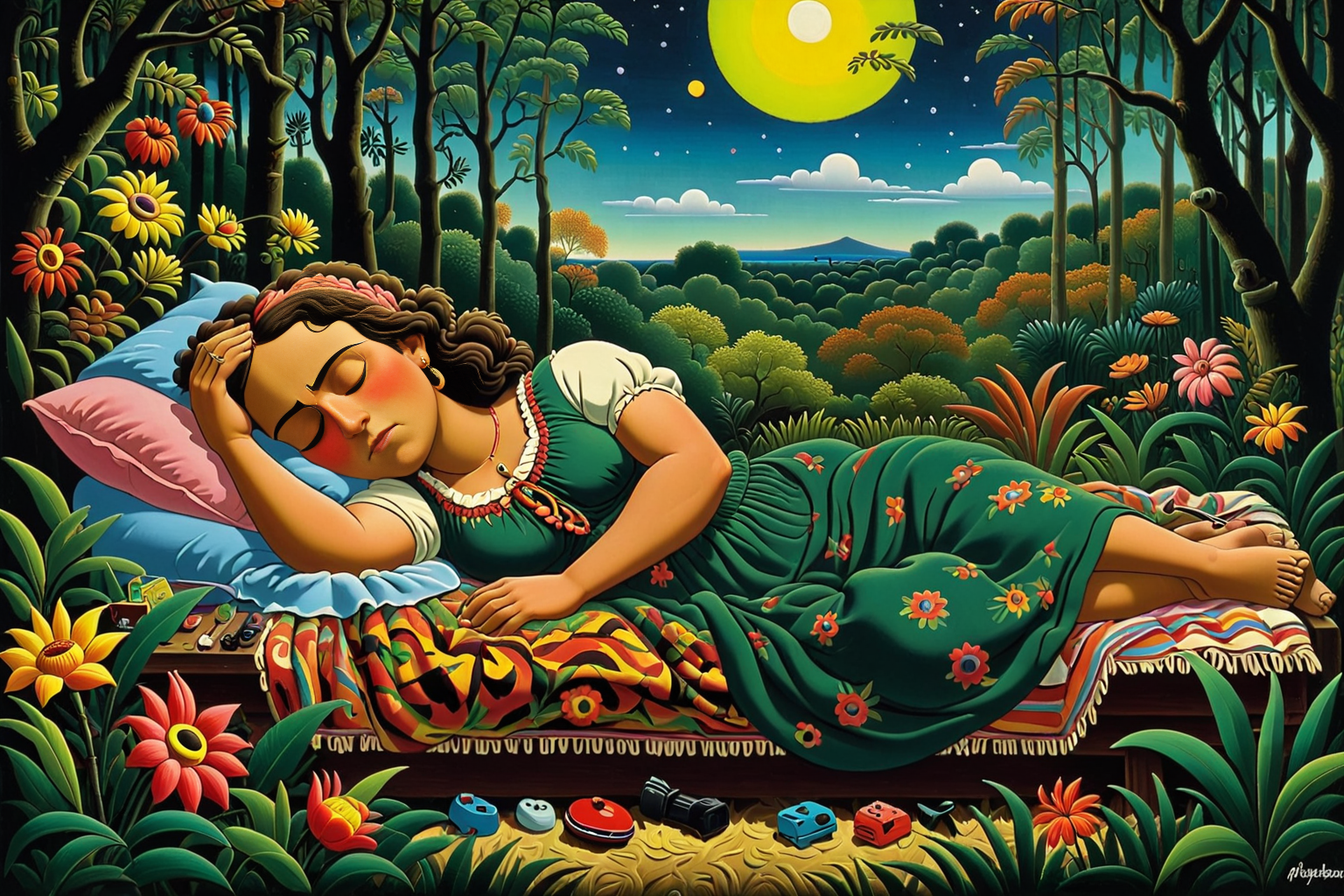 The Sleeping Gypsy by Henri Rousseau, colorful, very detailed, HD, highly detailed, sharp focus, stunningly beautiful, hyper-detailed, HDR+, 16K, retro arcade style, 8-bit, pixelated, vibrant, classic video game, old school gaming, reminiscent of 80s and 90s arcade games