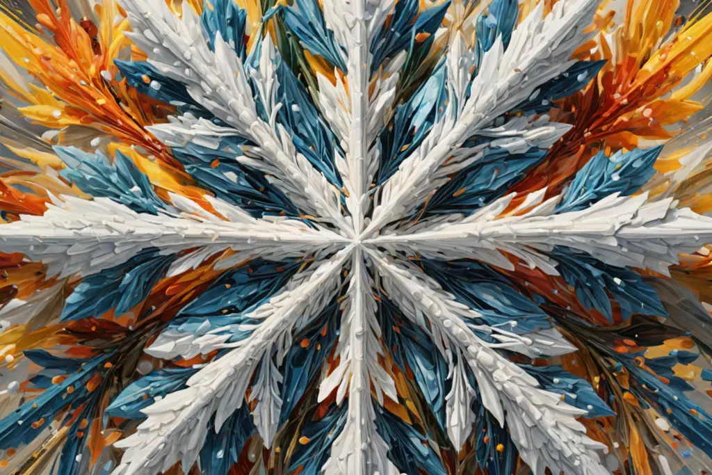 Snowflake, centered, close up, colorful, HD, sharp focus, stunningly beautiful, hyper-detailed, HDR+, 64K, concept art, digital artwork, illustrative, painterly, matte painting, highly detailed