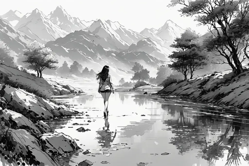 beautiful woman, in full height, great body, gorgeous figure, beautiful face, learns JavaScript programming language, beautiful background, magnificent scenery, colorful, HD, sharp focus, stunningly beautiful, hyper-detailed, HDR+, 64K, biomechanical style, blend of organic and mechanical elements, futuristic, cybernetic, detailed, intricate