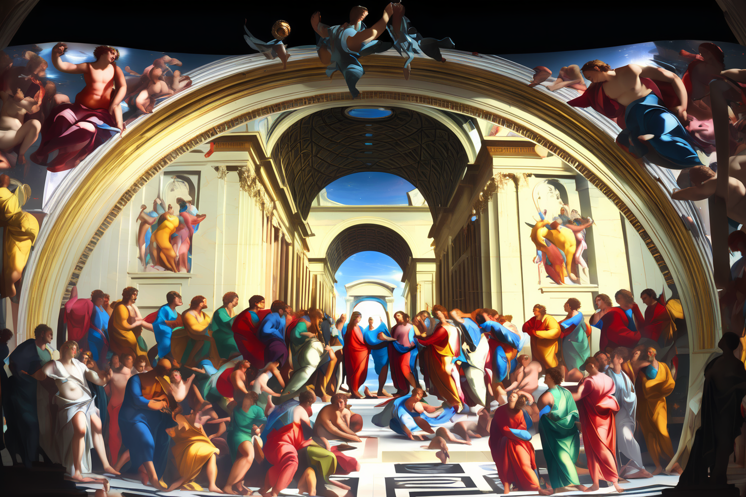 This is how the SDXLNijiSeven image generation model “sees” the “School of Athens” painting by Raphael.
