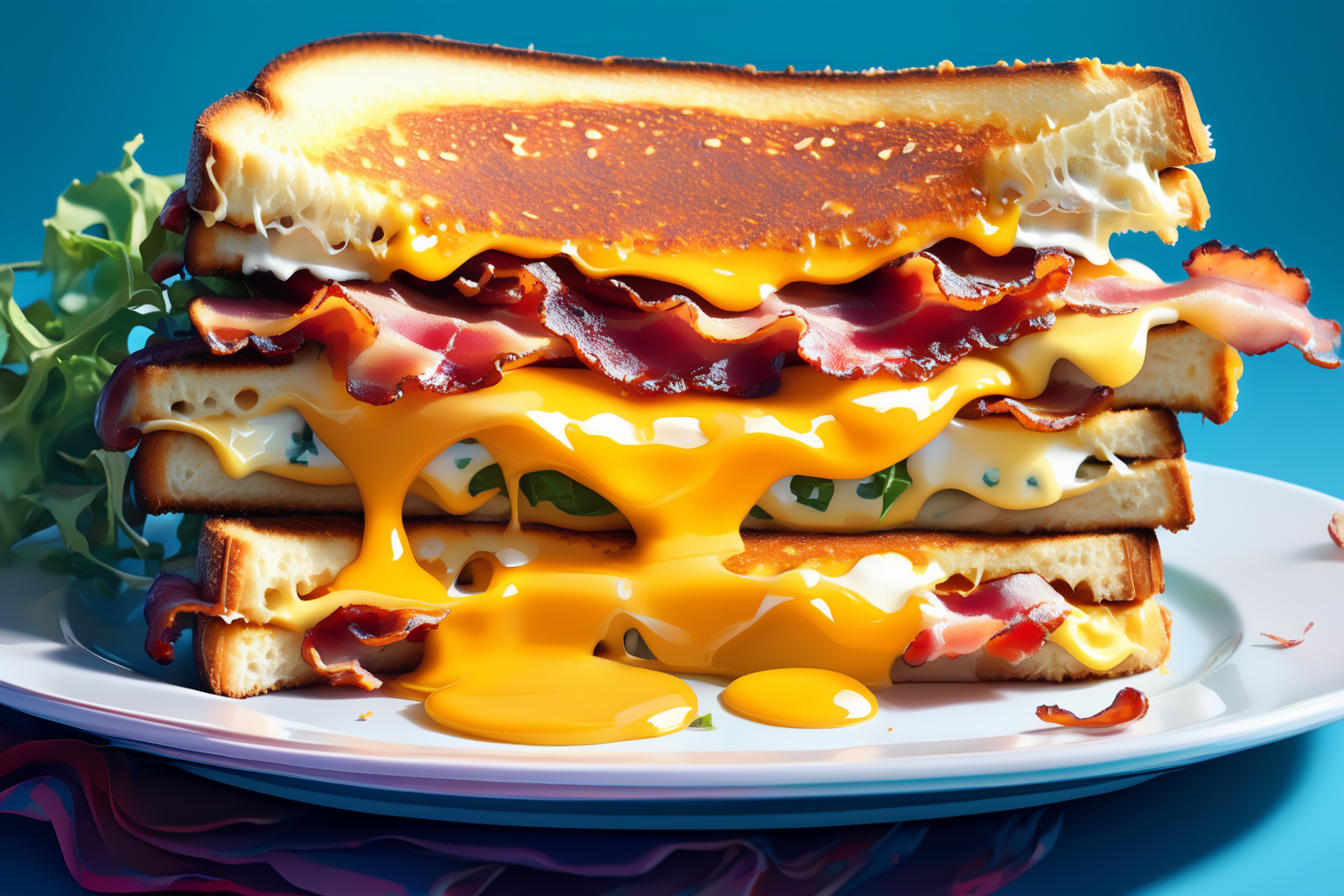 The classic comfort food! A grilled cheese sandwich with crispy bacon is a match made in heaven. The gooey melted cheese, the smoky savory flavor of the bacon, and the crispy bread all come together to create a deliciously satisfying meal.