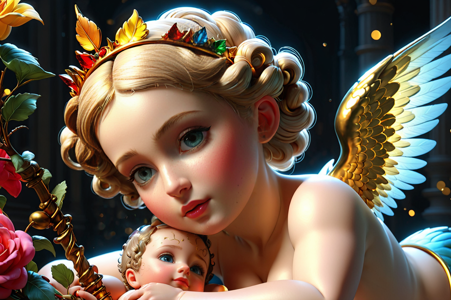 An Allegory with Venus and Cupid by Agnolo Bronzino, HD, sharp focus, stunningly beautiful, hyper-detailed, HDR+, glow effects, godrays, Hand drawn, render, 8k, octane render, cinema 4d, blender, dark, atmospheric 4k ultra detailed, cinematic, Sharp focus, big depth of field, Masterpiece, colors, 3d octane render, 4k, concept art, trending on artstation, hyperrealistic, Vivid colors, extremely detailed CG unity 8k wallpaper, trending on CGSociety, Intricate, High Detail, dramatic