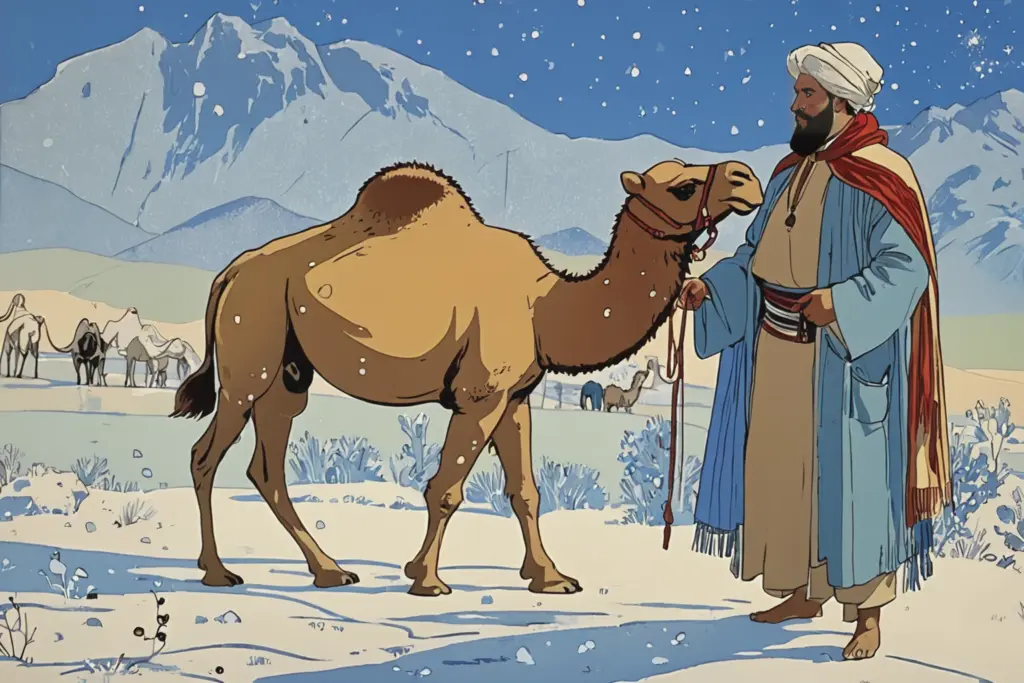 Title: Winter’s Embrace in the Congo: A Cloisonism Scroll Painting by Gustave Moreau