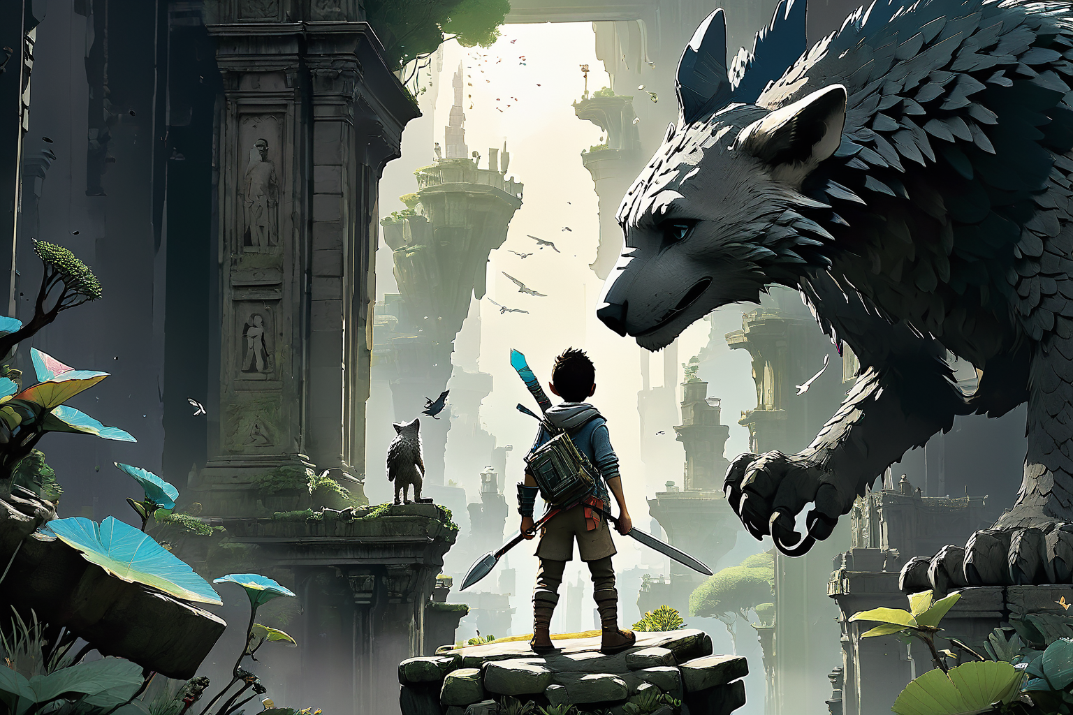 Here is the today’s game title: The Last Guardian (2016): In a fantastical realm, a boy and his ethereal companion navigate perilous landscapes, their unique bond guiding them through challenges, as they embark on an epic quest filled with wonder and emotion.