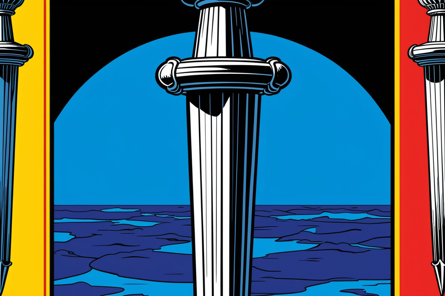 Eight of Swords Tarot card, Oleg Tselkov style, , Restriction, limitations, period, situation, challenge, growth, perspective, options, instincts, self-belief, patience, outlook, open-mindedness, determination, obstacles, path. HD, sharp focus, stunningly beautiful, hyper-detailed, Pop Art, vivid colors, flat color, 2D, strong lines, Pop Art