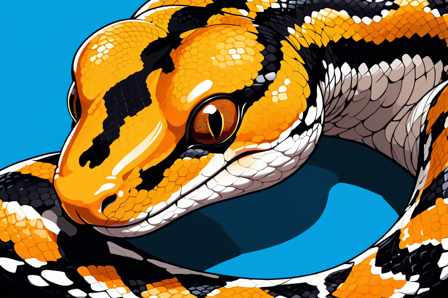 Axanthic Ball Python, John Heartfield style, HD, sharp focus, stunningly beautiful, hyper-detailed, Simple Vector Art, 2D flat, simple shapes, minimalistic, professional graphic, flat color, high contrast, Simple Vector Art