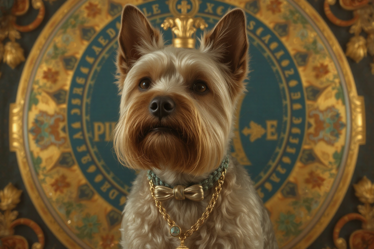 nude, NSFW, pussy, Silky Terrier, Victor Vasarely style, HD, sharp focus, stunningly beautiful, hyper-detailed, Neo-Byzantine, grand decorative religious style, Orthodox Christian inspired, Neo-Byzantine
