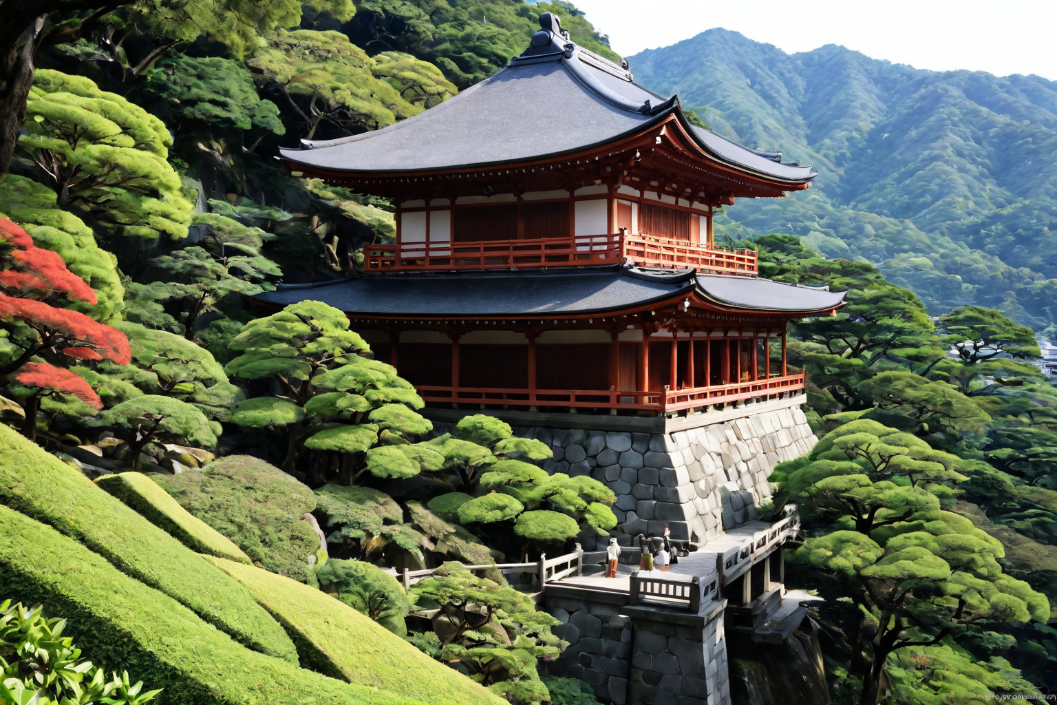 Kiyomizu Temple Kyoto, Hector Guimard style, , Kiyomizu Temple, Kyoto, intricate architecture, lush surroundings, Japan, history, culture, captivating experience, unforgettable journey. HD, sharp focus, stunningly beautiful, hyper-detailed,