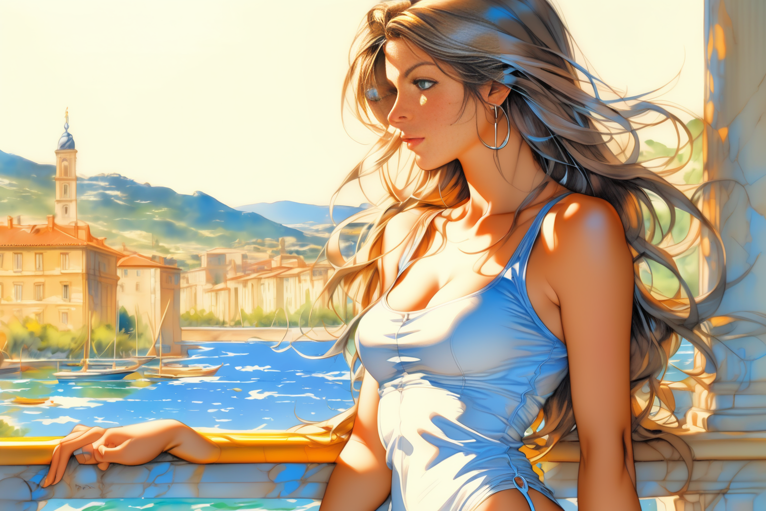 young woman, beautiful face, standing, great body, gorgeous figure, long legs, pretty eyes, long hair, learns A-0 System programming language, beautiful background, magnificent scenery, Jacques-Louis David style, HD, sharp focus, stunningly beautiful, hyper-detailed, Colored Pencil Art, colored pencil strokes, light color, visible paper texture, colored pencil art