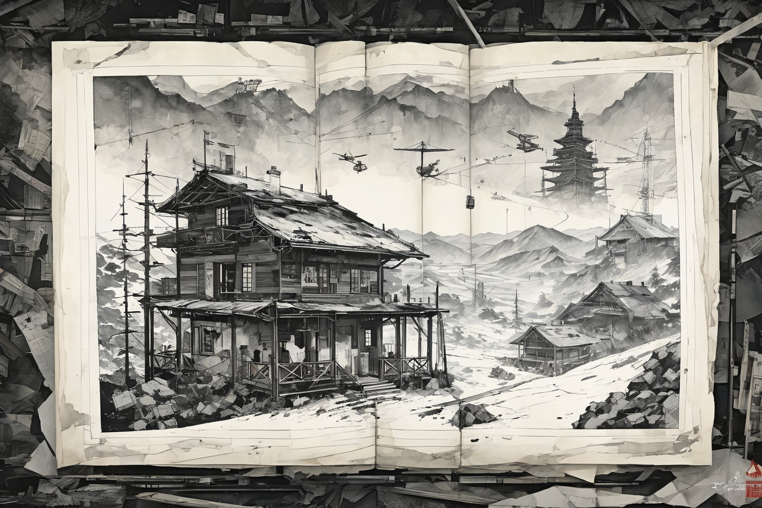 Game: Zork (1977), El Lissitzky style, , Zork (1977), unique calendar, GUE time, small area, white house, adventure, Colossal Cave Adventure HD, sharp focus, stunningly beautiful, hyper-detailed, Japanese Ink Drawing, ink drawing, inkwash, Japanese Ink Drawing