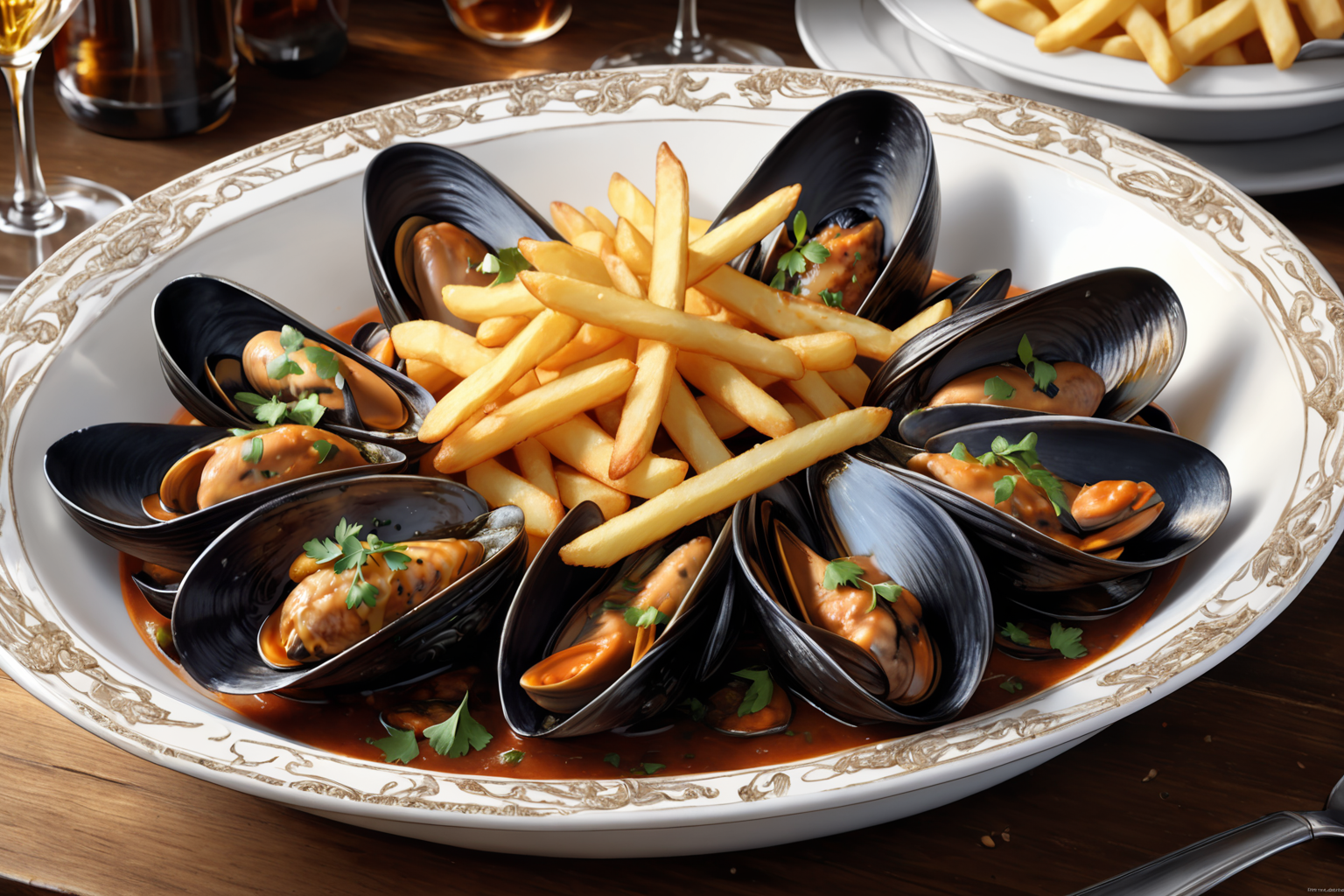 Moules frites is a classic French dish that consists of steamed mussels served with Belgian fries. It’s a simple yet delicious combination often enjoyed in a casual setting.