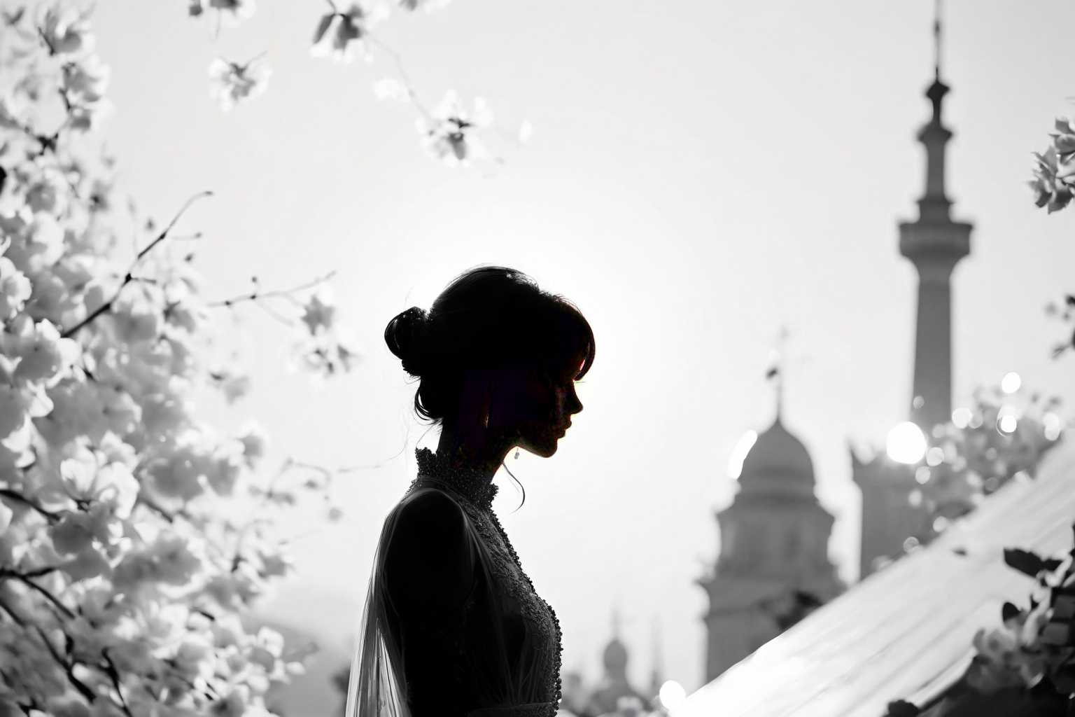 remain, Ely Bielutin style, HD, sharp focus, stunningly beautiful, hyper-detailed, silhouette style, high contrast, minimalistic, black and white, stark, dramatic