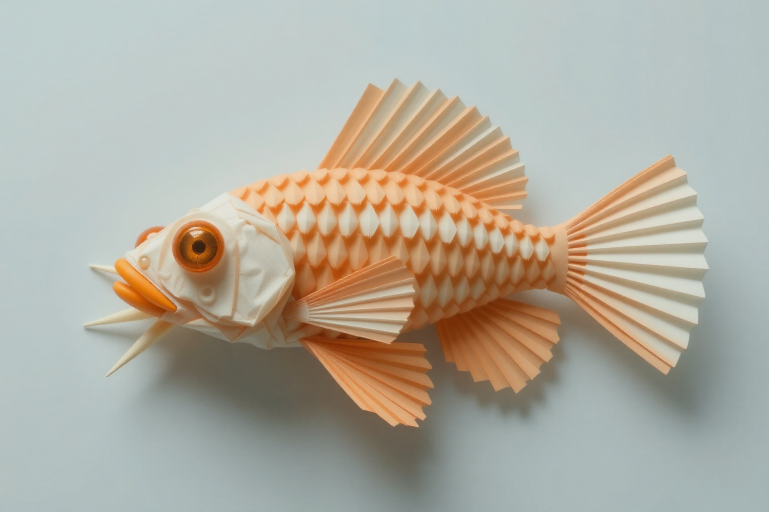 Killifish, Ely Bielutin style, HD, sharp focus, stunningly beautiful, hyper-detailed, origami style, paper art, pleated paper, folded, origami art, pleats, cut and fold, centered composition