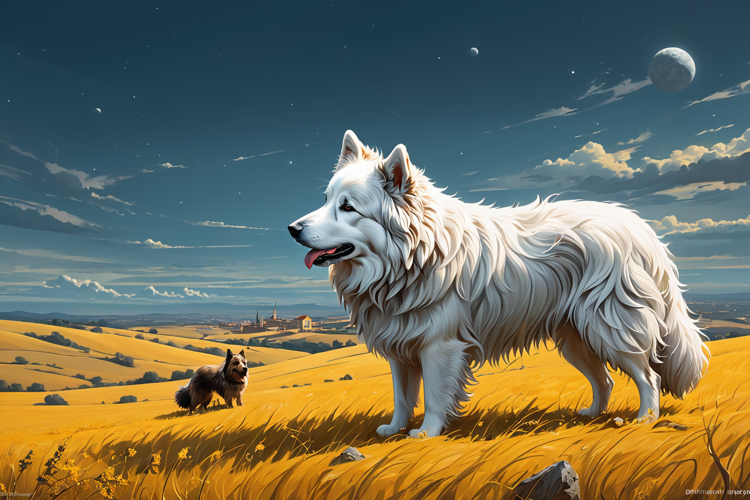 Catalan Sheepdog, Dmitri Gutov style,    HD, sharp focus, stunningly beautiful, hyper-detailed, Surrealism, expressive, dramatic, organic lines and forms, dreamlike and mysterious, Surrealism