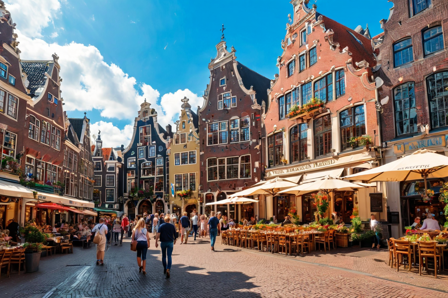Grote Markt Netherlands, Masaccio style, , Grote Markt, Netherlands, historic buildings, vibrant cafes, Dutch history, culture, captivating, enchanting. HD, sharp focus, stunningly beautiful, hyper-detailed, Legend of Zelda style, vibrant, fantasy, detailed, epic, heroic, reminiscent of The Legend of Zelda series