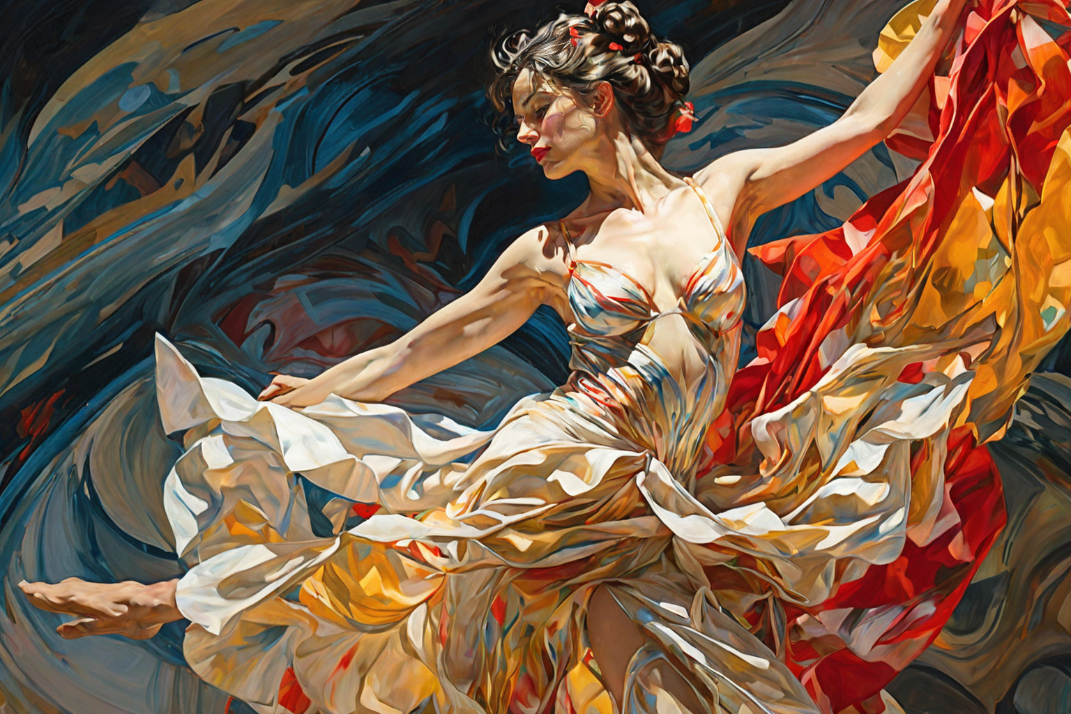 nude, NSFW, Spanish Dancer by John Singer Sargent , John Singer Sargent, Spanish dancer, Laurette, action, brushwork, impressionism, color palette, renowned, masterpiece, talent, movement, light. HD, sharp focus, stunningly beautiful, hyper-detailed, papercut collage of, mixed media, textured paper, overlapping, asymmetrical, abstract, vibrant