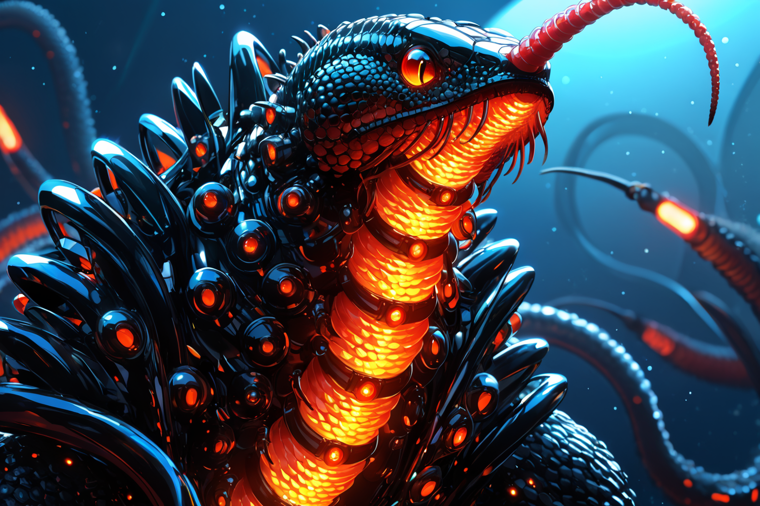 Bearded Fireworm, Karl Bryullov style, HD, sharp focus, stunningly beautiful, hyper-detailed, futuristic style, sleek, modern, ultramodern, high tech, detailed