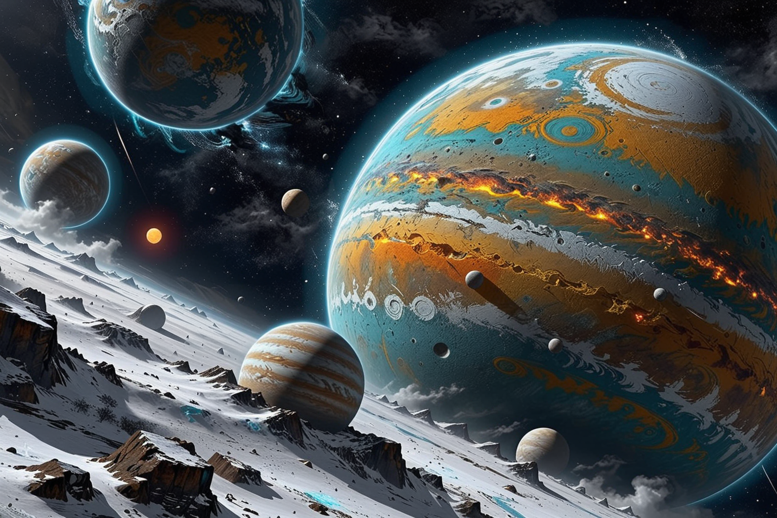 NSFW, Haumea exoplanet, Paul Éluard style, , Haumea, temperature, icy haze, diamond rain, cloud cover, trivia, solar system, rotating, large objects, fast spin, 36.6 hours, surprise, chilly, planet facts, outer space, weather HD, sharp focus, stunningly beautiful, hyper-detailed, Graffiti Art Style, dynamic, dramatic, vibrant colors, graffiti art style