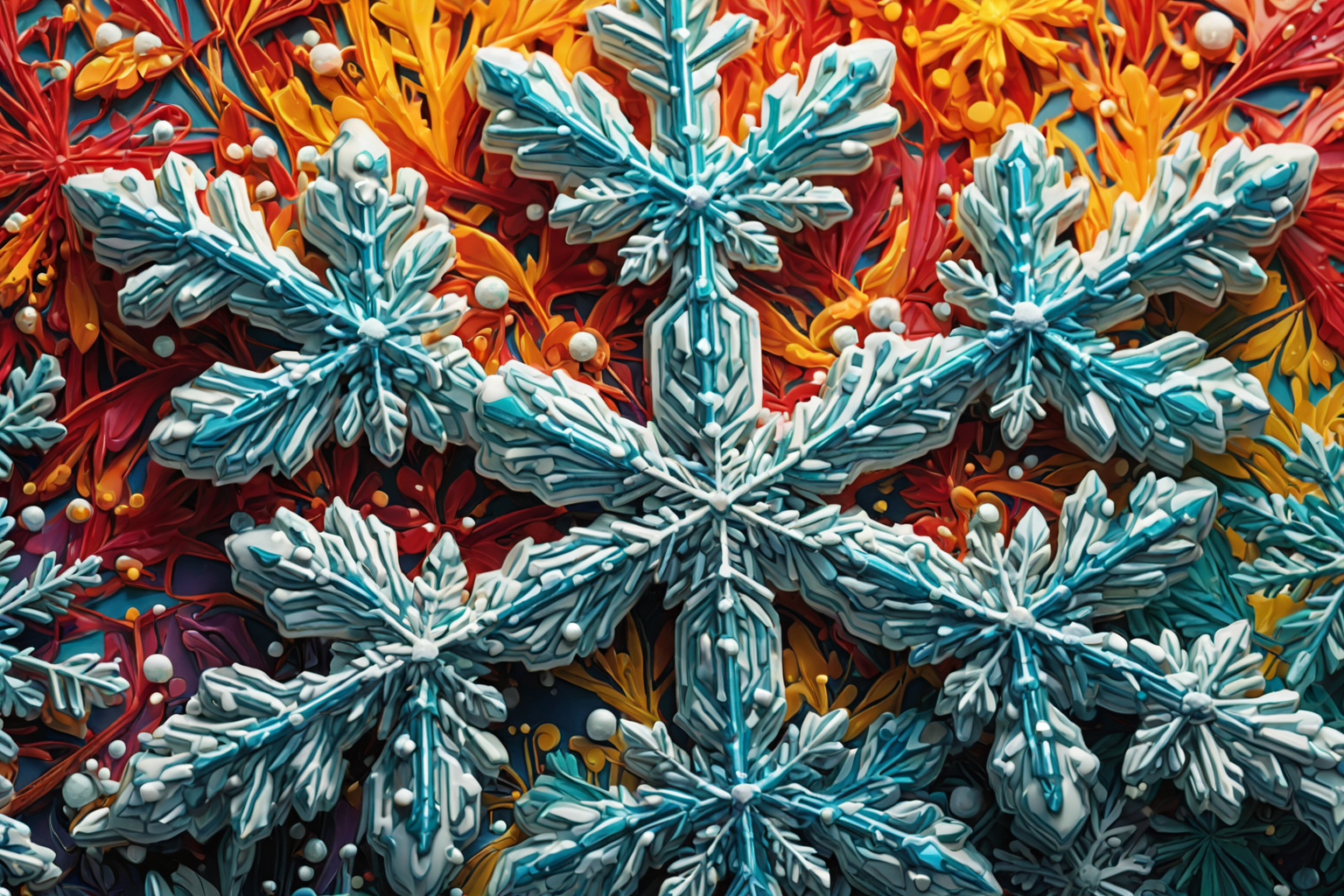 Snowflake, centered, close up, Ivan Shishkin style, HD, sharp focus, stunningly beautiful, hyper-detailed, Pop Art style, bright colors, bold outlines, popular culture themes, ironic or kitsch