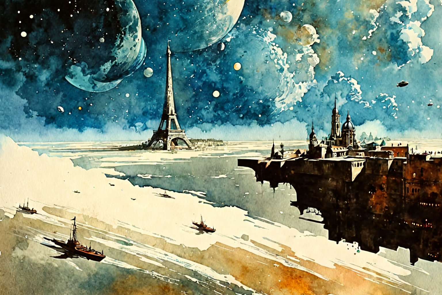 Movie: Perpetuum Mobile (2009), Giovanni Antonio Canaletto style, , Movie title, Perpetuum Mobile (2009), French experimental film, Claire Denis, Fabrice Pluchniak, love, obsession, control, nonlinear narrative structure. HD, sharp focus, stunningly beautiful, hyper-detailed, Watercolor style painting, visible paper texture, colorwash, watercolor