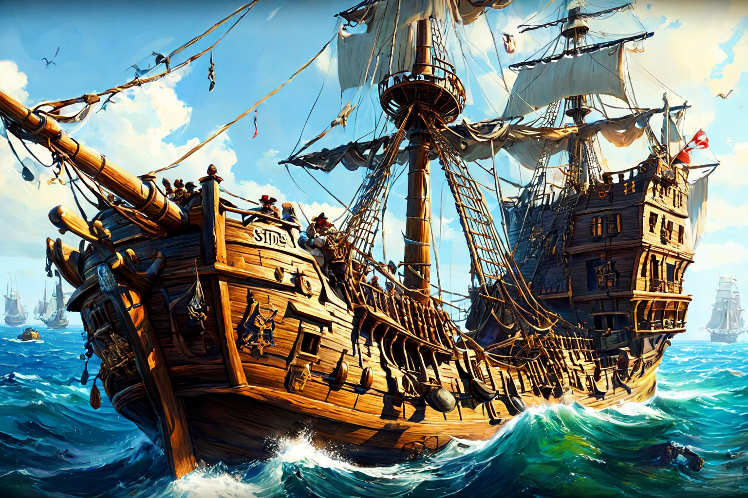 Game: Sid Meier’s Pirates! (1987), Vincent van Gogh style, Pirates!, Sid Meier’s, Game, Title, Spanish Main, Adventures, Crew, Buccaneers, Harbour towns, Rollocking, Plunder, Enemy ships, Pirate game, History, Exploration, Strategy. HD, sharp focus, stunningly beautiful, isometric style, vibrant, beautiful, crisp, detailed, ultra detailed, intricate