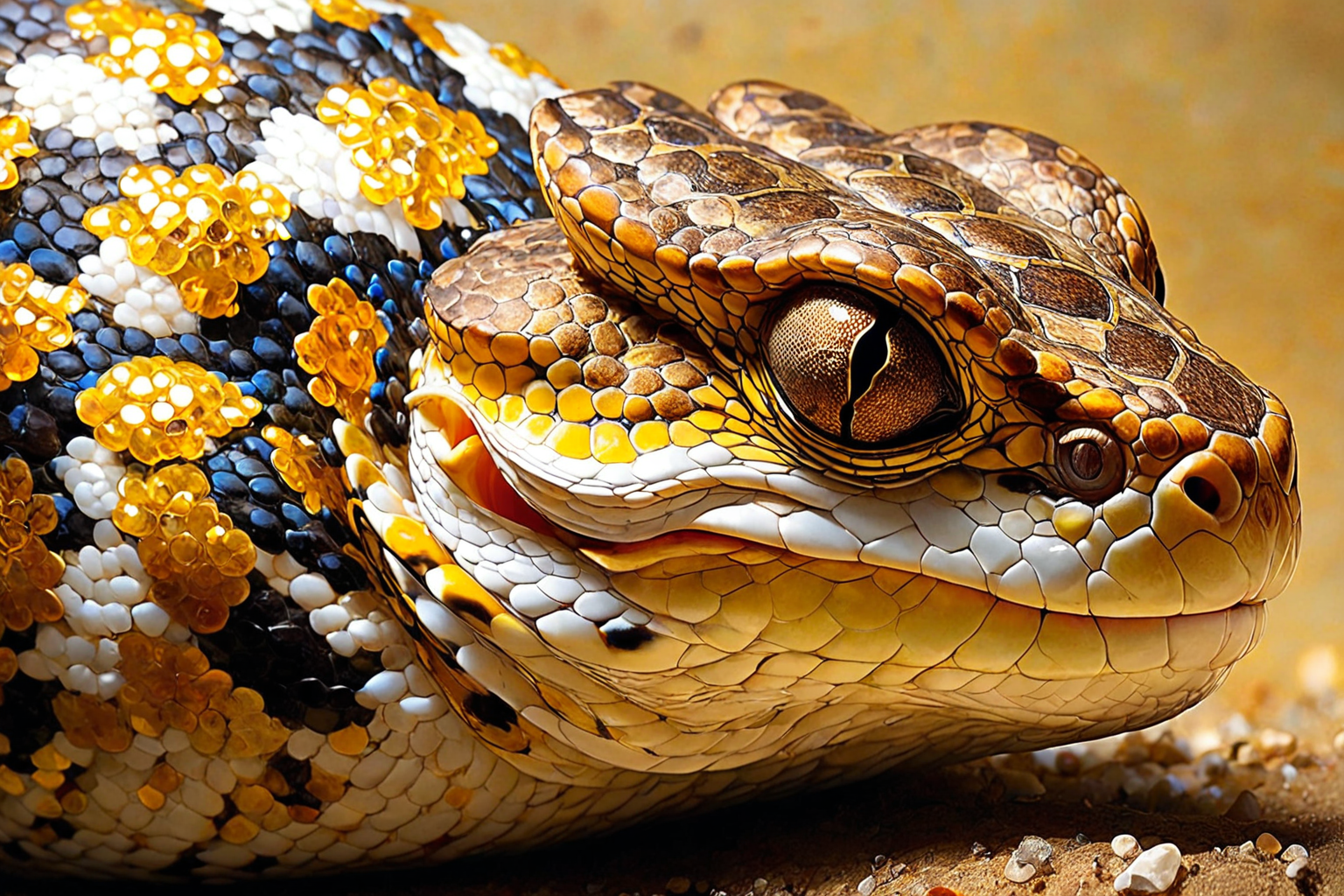 Puff Adder, Vermeer style, HD, sharp focus, stunningly beautiful, Neo-Byzantine, grand decorative religious style, Orthodox Christian inspired, Neo-Byzantine
