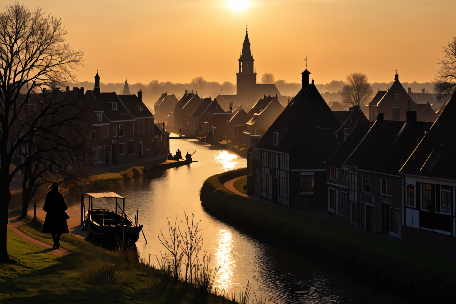 Papendrecht, Netherlands, Vermeer style, sunny, skies, breeze, nature, town, Papendrecht, Netherlands, weather, update, charming HD, sharp focus, stunningly beautiful, Silhouette Art, high contrast, well defined, Silhouette Art