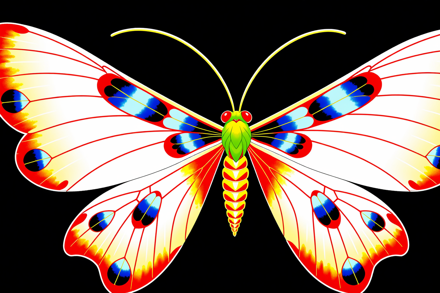 Comet Moth, Leon Bakst style, HD, sharp focus, stunningly beautiful, kawaii style, cute, adorable, brightly colored, cheerful, anime influence, highly detailed