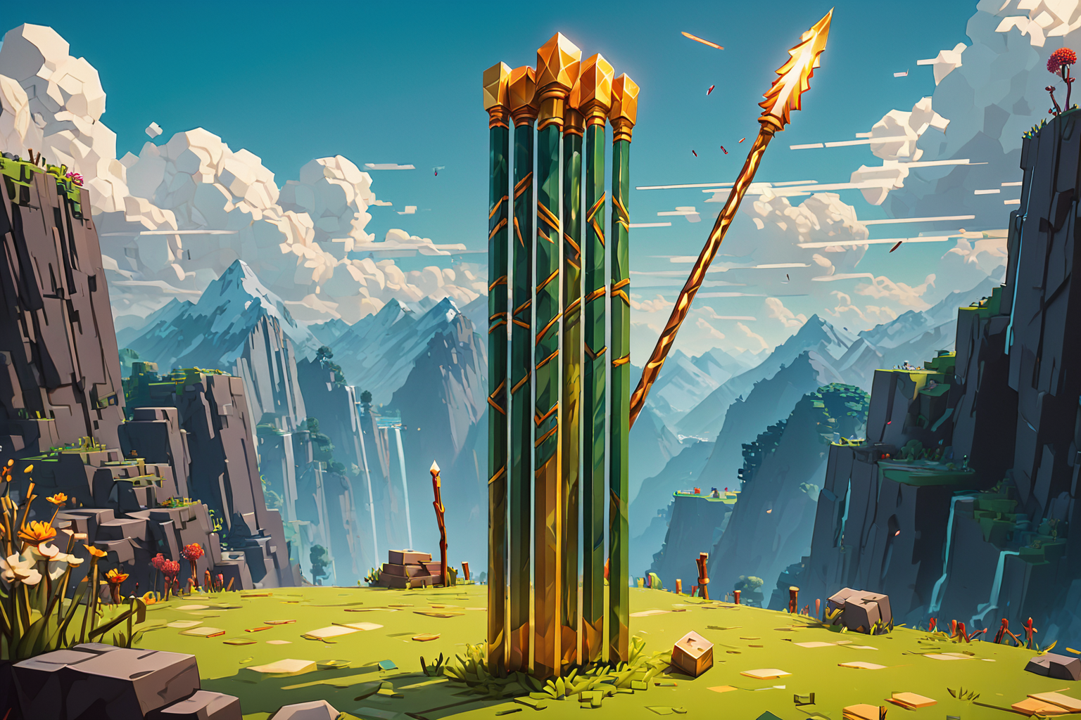 NSFW, Nine of Wands Tarot card, Alexandra Exter style, Nine of Wands, shift, resilience, measured approach, veteran, storms, firm, weary, strong, consolidation, strategic defense, challenges, bruised, battered, willpower, determination, knowledge, defense, reckless offense, practical matters, situation, boundaries, resources, time, energy, emotional wellbeing, skepticism, resistance, ground, calm, rationally, self-care, drama, internal strength, burnout, body, mind, say no, unproductive battles, wisdom, experience, victory, steadfast, focus, core needs, aggression, preservation, power HD, sharp focus, stunningly beautiful, Minecraft style, blocky, pixelated, vibrant colors, recognizable characters and objects, game assets