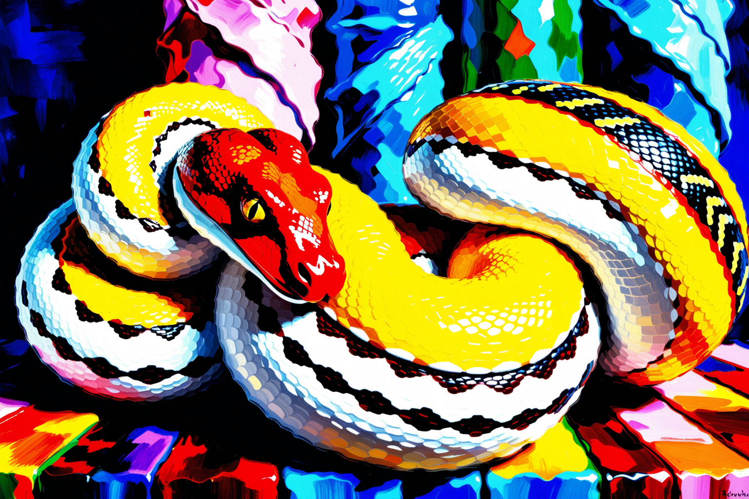 Python, Giovanni Bellini style, HD, sharp focus, stunningly beautiful, Fauvism Art, painterly, bold colors, textured brushwork, fauvism art