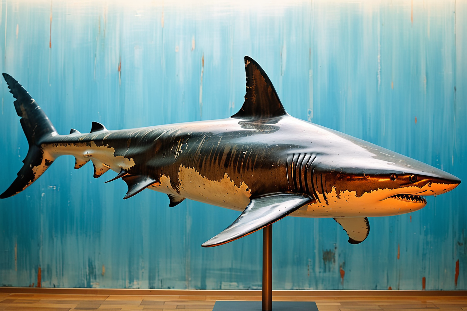 Spinner Shark, Robert Rauschenberg style, HD, sharp focus, stunningly beautiful, Tranquil Relaxing Atmosphere, calming style, soothing colors, peaceful, idealic, Tranquil Relaxing Atmosphere