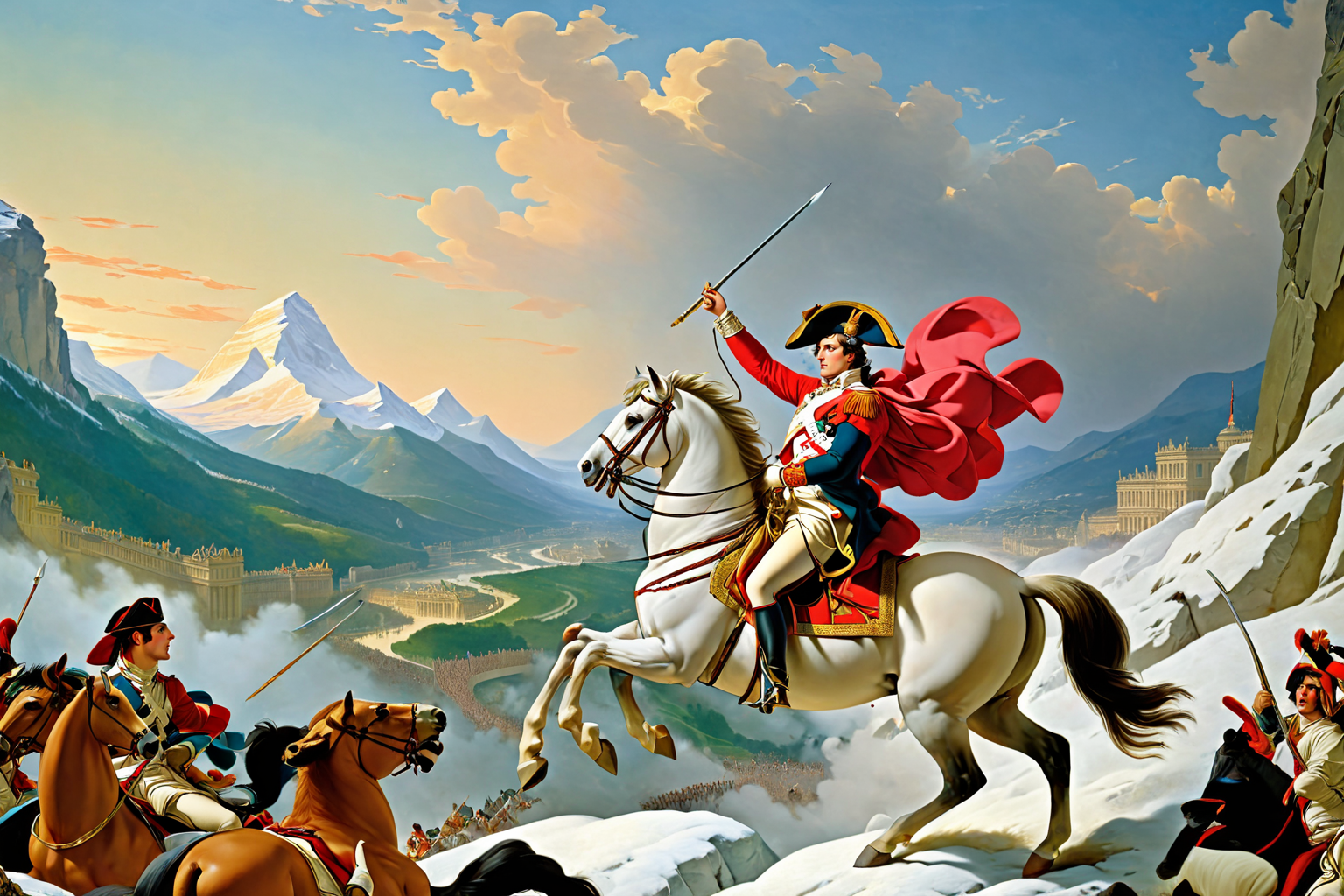 nude, NSFW, Napoleon Crossing the Alps by Jacques-Louis David , Napoleon, horseback, military campaigns, power, France, Palace of Versailles, Louvre Museum, heroism, leadership, Jacques-Louis David, painting skills, French history, art historian Betsy Sutherland, nationalistic sentiment, dramatic landscape, intensity, gravitas, Napoleon’s journey, artistic inspiration, enduring impact HD, sharp focus, stunningly beautiful, kawaii style, cute, adorable, brightly colored, cheerful, anime influence, highly detailed