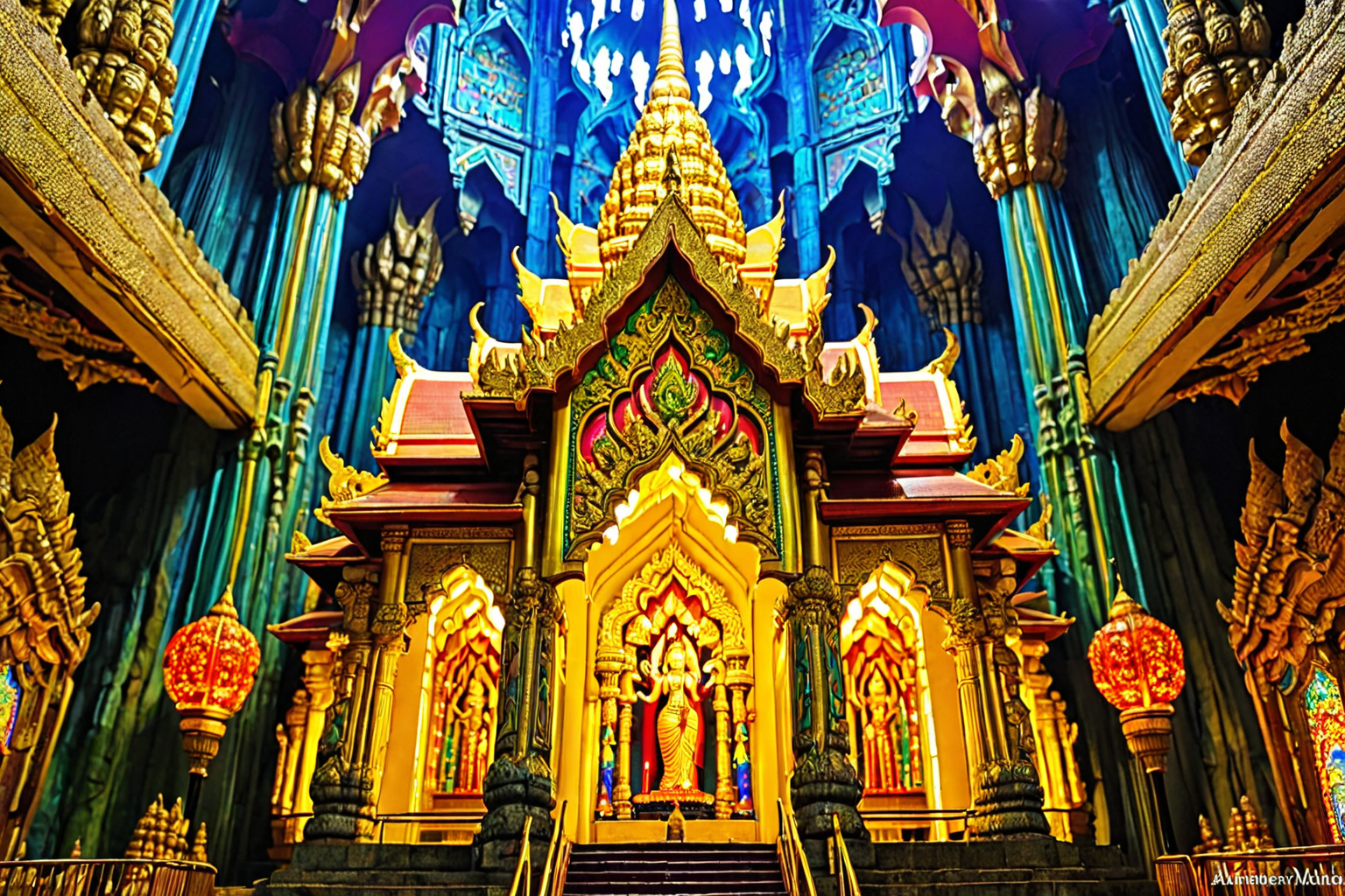 Batu Caves Malaysia, Alexander Melamid style, Malaysia, Batu Caves, temple, scale, vibrant, colors, breathtaking, must-see HD, sharp focus, stunningly beautiful, stained glass style, vibrant, beautiful, translucent, intricate, detailed