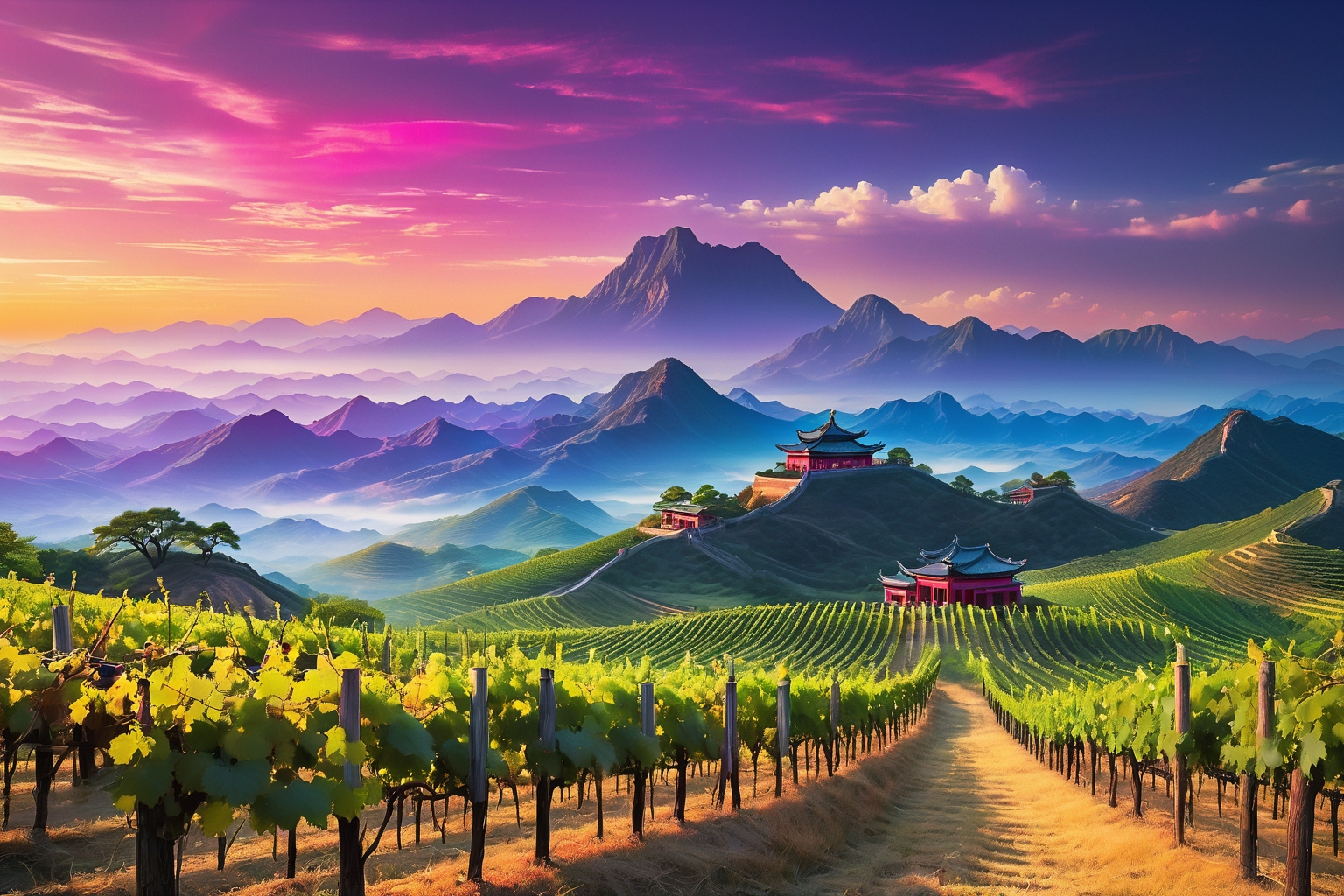 John Martin style, Chinese poetic sensibilities,Shi poetry,suggestion,nature imagery,color and light,Zen-like tranquility,wine,authenticity HD, sharp focus, stunningly beautiful, Astral Aura, astral, colorful aura, vibrant energy