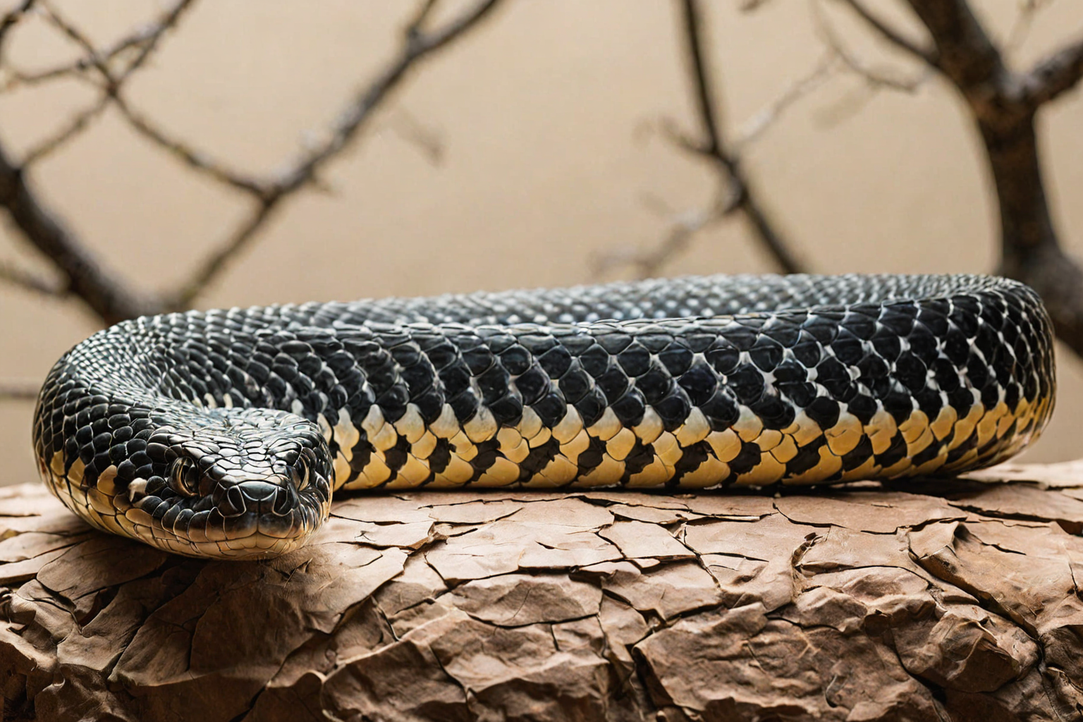 Speckled Kingsnake, Frédéric Bazille style, HD, sharp focus, stunningly beautiful, flat papercut style, silhouette, clean cuts, paper, sharp edges, minimalist, color block