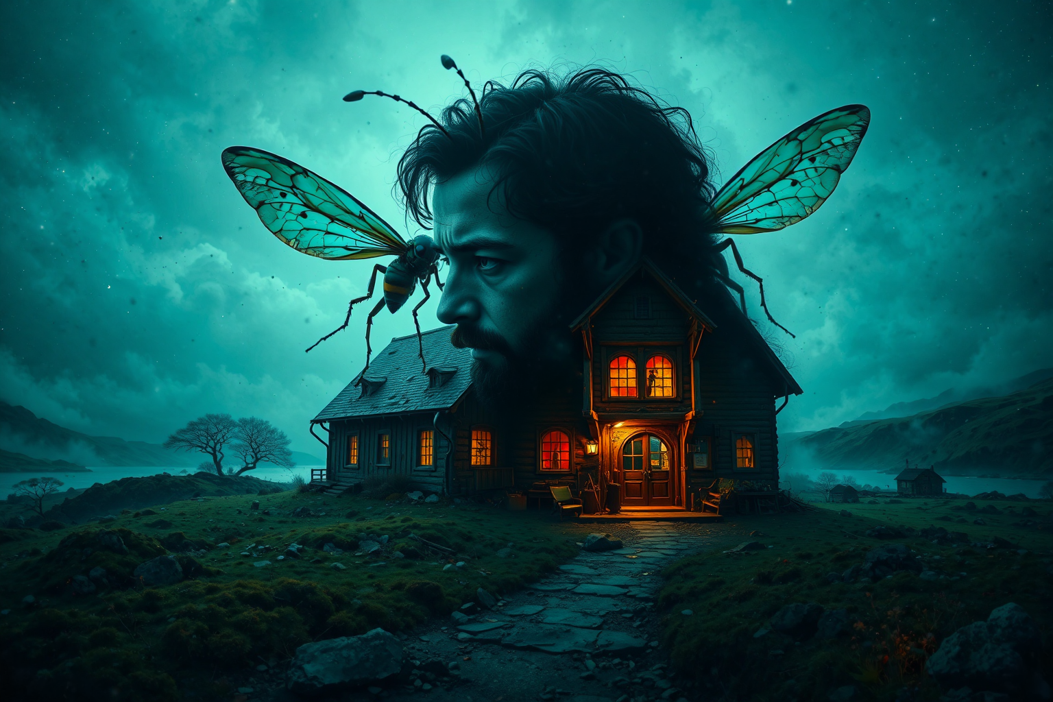 - The story revolves around Frank Cauldhame, a troubled 16-year-old living on a remote Scottish island, who believes he can manipulate events by performing rituals with his ‘wasp factory’.PromptBook: The Wasp Factory by Iain Banks, Isaac Levitan style, Iain Banks, novel, dark humor, psychological horror, Frank Cauldhame, troubled, remote Scottish island, rituals, wasp factory. HD, sharp focus, stunningly beautiful, Double Exposure Style, double image ghost effect, image combination, double exposure styleNegative promptugly, deformed, noisy, blurry, low contrast, extra eyes, bad eyes, ugly eyes, imperfect eyes, deformed pupils, deformed iris, cross-eyed, poorly drawn face, bad face, fused face, ugly face, worst face, unrealistic skin texture, out of frame, poorly drawn hands, cloned face, double face, blurry, bad quality