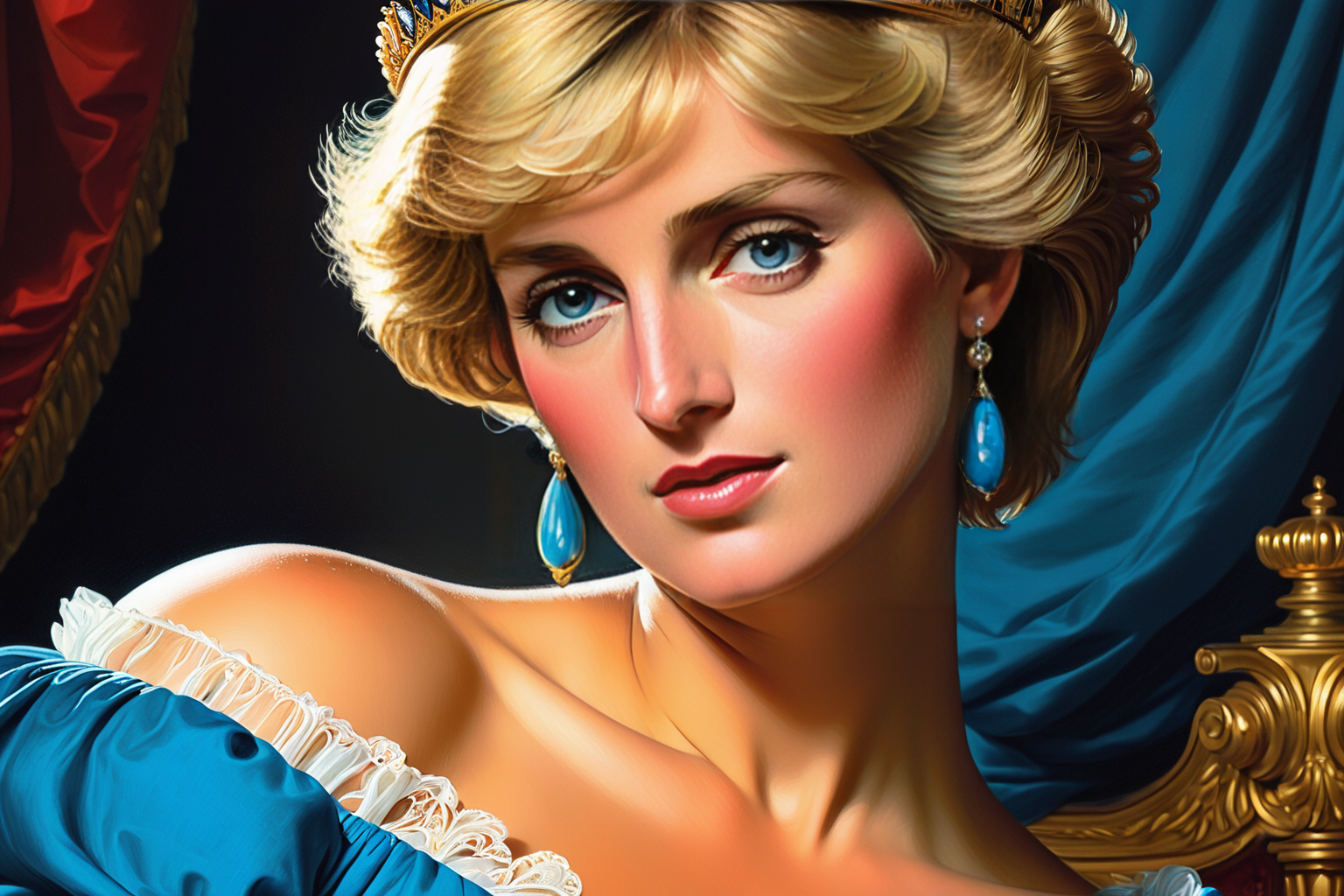 NSFW, Princess Diana, portrait, Jean-Auguste-Dominique Ingres style, HD, sharp focus, stunningly beautiful, Glo-fi Art Style, dynamic, dramatic, vibrant colors, glo-fi art style
