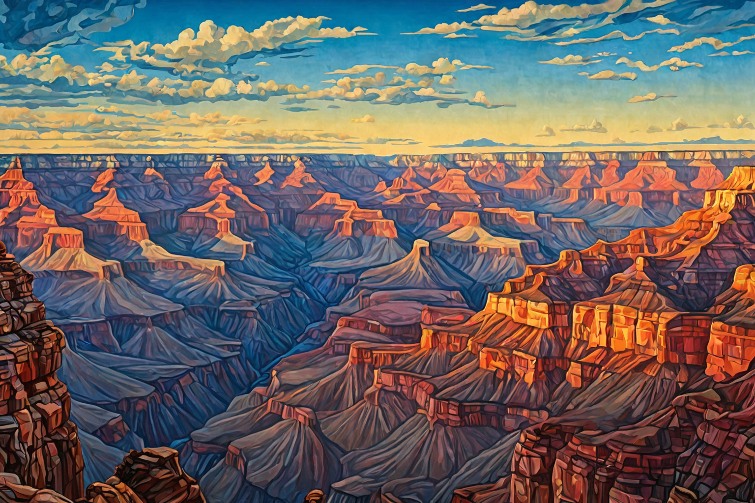 NSFW, Grand Canyon USA, Nicholas Roerich style, Grand Canyon, USA, breathtaking, scale, unbelievable, colors, stunning. HD, sharp focus, stunningly beautiful, Baroque, dramatic, exuberant, grandeur, baroque art