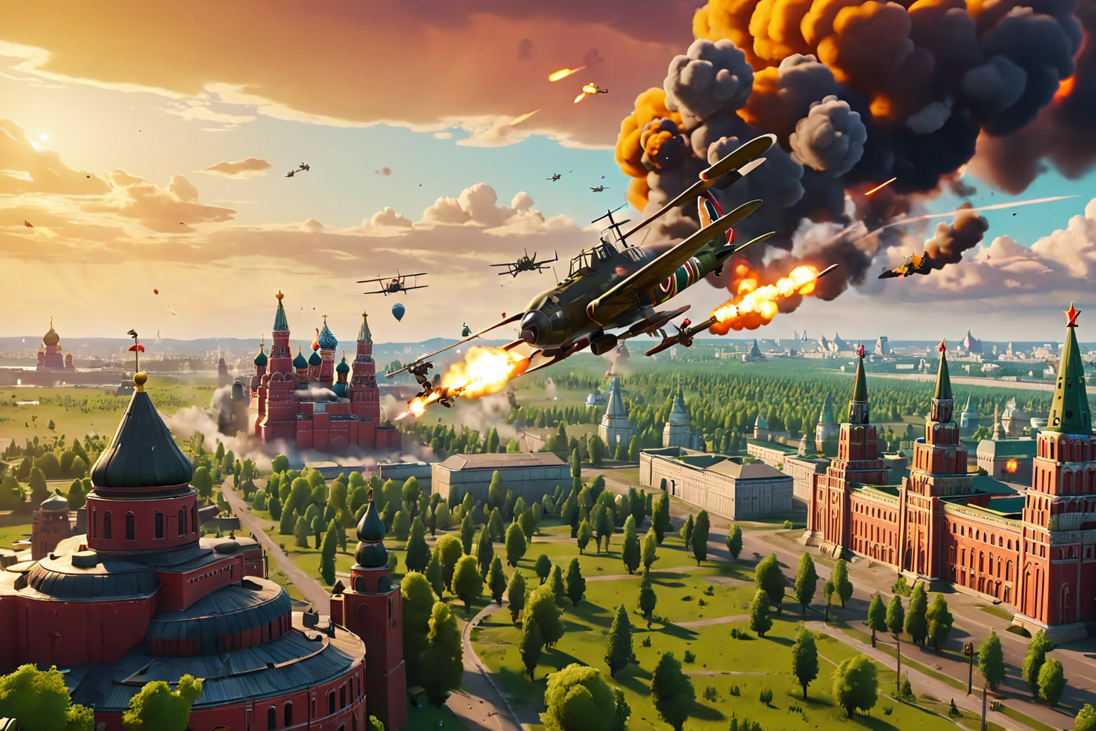 Movie: Moscow Strikes Back (1942), Josef Hoffmann style, Moscow Strikes Back, Soviet war film, Viktor Ekimov, World War II, Battle of Kursk, Russian pilots, Mikhail Gelovani, Andrei Abrikosov, Georgy Vasilyev, aerial combat, All-Union Film Festival HD, sharp focus, stunningly beautiful, Fortnite Art Style, 3D cartoon, colorful, Fortnite Art Style