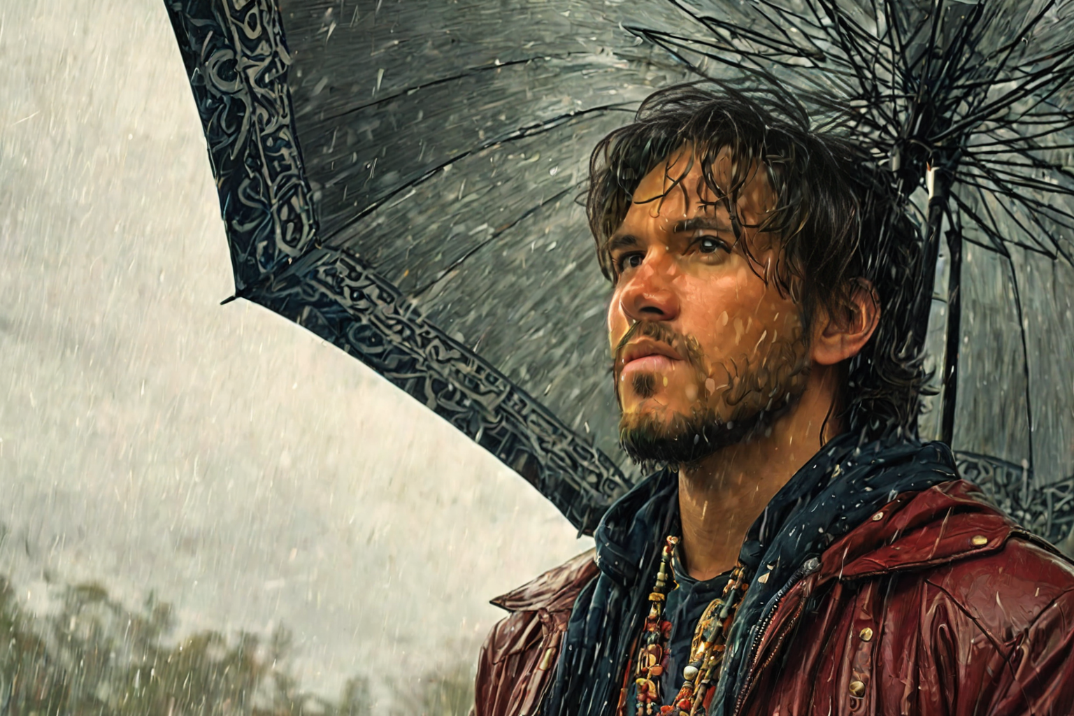 Lafayette, United States, Arnold Böcklin style, weather, Lafayette, United States, Louisiana, November 29, 2025, temperature, crisp, 48°F (9°C), winds, gusting, 15 mph, skies, overcast, rain showers, precipitation, flurries, chill, warm coat, umbrella, stay dry. HD, sharp focus, stunningly beautiful, tribal style, indigenous, ethnic, traditional patterns, bold, natural colors, highly detailed