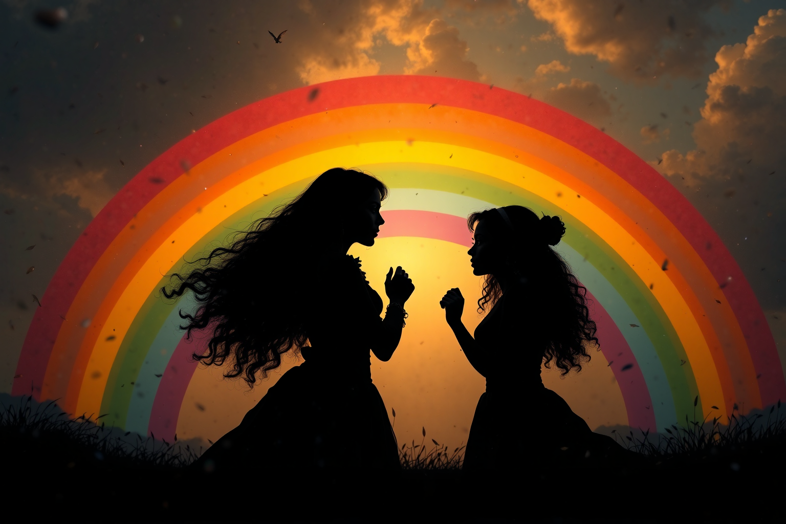Rainbow Kribs, Gustave Courbet style, HD, sharp focus, stunningly beautiful, Silhouette Art, high contrast, well defined, Silhouette Art