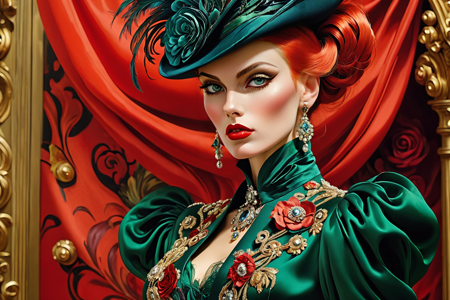 hasty, Otto Dix style, HD, sharp focus, stunningly beautiful, High Fashion, dynamic, dramatic, haute couture, elegant, ornate clothing, High Fashion